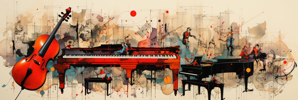 Ein umfangreiches und vielseitiges Repertoire ist das Markenzeichen eines versierten Musikers. Im Unterricht lernen Schülerinnen und Schüler eine Vielzahl von Stücken aus verschiedenen musikalischen Genres und Epochen kennen. Dabei werden zum tieferen Verständnis, die Stücke melodisch und harmonisch analysiert und Herangehensweisen zum zügigen und sicheren Erlernen veranschaulicht.